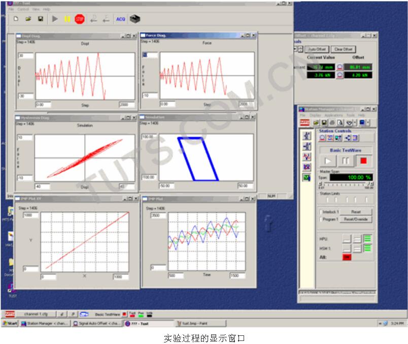 IMP(Isolated Measurement Pods) 为 英国SolartronInstruments公司制造的分布式数据采集板,具有长期可靠的工作性能,可采集电压、电流、电阻、热电偶及应变数据,用于结构实验中力、位移、应变以及温度的测量。 数据采集软件TUDAQ可最多连接50块IMP板 (即500个应变通道或1000个位移通道),在1秒钟之内完成所有通道采集,可同时显示任意8个数据通道的时程曲线和数值,也可以同时显示4条任意两个通道数据的相关曲线。 程序主界面如图所示, 绘图区显示采集数据的时程曲线,通过工具栏或菜单可以设置系统参数并控制数据采集过程的启动、暂停及结束。